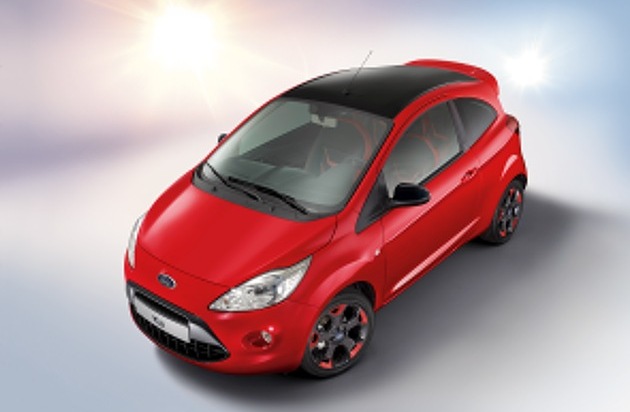 Er ist sportlich, stilvoll, einzigartig: Das auf 350 Exemplare limitierte Editionsmodell Ford Ka Red & Black - und es setzt ein selbstbewusstes Statement in Sachen Styling und Individualität. Ab sofort erhältlich ist der kleine Verführer in zwei "Geschmacksrichtungen": in Midnight-Schwarz-Metallic oder in Flame-Rot, wobei das Fahrzeugdach in der jeweiligen Kontrastfarbe lackiert ist. Der schwarz lackierte Frontgrill und ein frecher Dachspoiler in Fahrzeugfarbe runden den spektakulären Auftritt ab. Der Basispreis der Ford Ka Red & Black Edition beträgt 12.925 Euro (UPE inklusive MwSt)*).