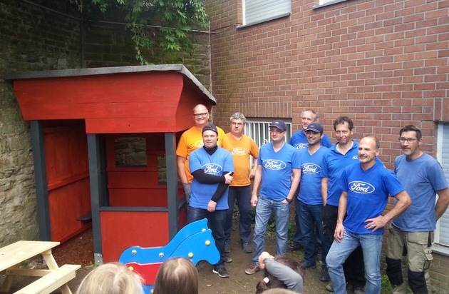 Zu Beginn des "Global Caring Month", den Ford im September weltweit unter seinen Beschäftigten ausgerufen hat, halfen von Dienstag, 8., bis Mittwoch, 9. September, zehn Freiwillige beim Aufbau eines Wichtelhäuschens in der Caritas-Kindertagestätte in Bensberg. Zu den Aufgaben der sonst in der Homologierung des Automobilherstellers tätigen Beschäftigten gehörten der Freischnitt des Aufbaubereiches, die Vorbereitung des Bodens sowie Aufbau und Anstreichen des Wichtelhäuschens. Darüber hinaus wurden für die Kitas in Bensberg und Ferrenberg sechs besonders stabile Sitzgruppen gebaut und gegen Verwitterung behandelt. In Bensberg freuen sich nun 55 teils behinderte Kinder über die neuen Spielmöglichkeiten im Außengelände, in Ferrenberg sogar 63 Kinder.