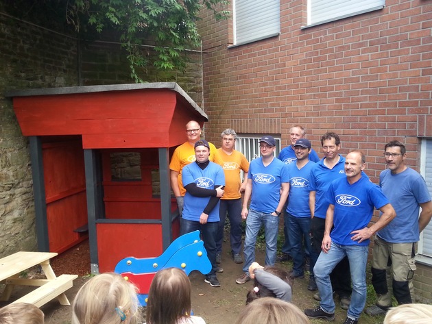 Zu Beginn des "Global Caring Month", den Ford im September weltweit unter seinen Beschäftigten ausgerufen hat, halfen von Dienstag, 8., bis Mittwoch, 9. September, zehn Freiwillige beim Aufbau eines Wichtelhäuschens in der Caritas-Kindertagestätte in Bensberg. Zu den Aufgaben der sonst in der Homologierung des Automobilherstellers tätigen Beschäftigten gehörten der Freischnitt des Aufbaubereiches, die Vorbereitung des Bodens sowie Aufbau und Anstreichen des Wichtelhäuschens. Darüber hinaus wurden für die Kitas in Bensberg und Ferrenberg sechs besonders stabile Sitzgruppen gebaut und gegen Verwitterung behandelt. In Bensberg freuen sich nun 55 teils behinderte Kinder über die neuen Spielmöglichkeiten im Außengelände, in Ferrenberg sogar 63 Kinder.