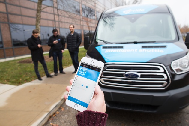 Entwicklung des "Dynamic Shuttle Service"Die Ford Motor Company testet ab dem ersten Quartal 2016 an ihrem Stammsitz in Dearborn/Michigan (USA) erstmals einen sogenannten "Dynamic Shuttle Service". Es handelt sich dabei um einen versuchsweisen On-Demand-Shuttledienst für Ford-Mitarbeiter, der zur Erforschung von Lösungen im Bereich des beruflichen Pendelverkehrs in Großstädten dient. Im Rahmen dieses Pilotprojekts kommen zunächst vier Ford Transit-Shuttlefahrzeuge zum Einsatz, die für die komfortable Beförderung von jeweils sechs bis acht Passagieren angepasst wurden. Zu den Annehmlichkeiten in den Fahrzeugen zählen kostenloses Wi-Fi, eine Ladestation für USB-Geräte für jeden Sitz sowie extra Stauraum.