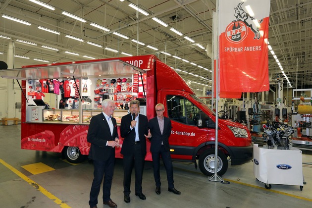 Bei dem Termin überreichte Ford-Deutschlandchef Mattes ein neues Fanmobil an FC-Geschäftsführer Alexander Wehrle und Werner Spinner, Präsident des 1. FC Köln. Das FC-Fanmobil ist ein mobiler Verkaufswagen, basierend auf einem Ford Transit-Fahrgestell mit Kofferaufbau. Darin ist ein Verkaufsladen untergebracht, aus dem - über die seitliche Verkaufsklappe, hinter der sich die Theke befindet - die Fanartikel des 1 FC. Köln verkauft werden.