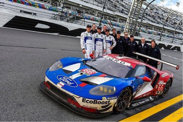 Ford schickt auch 2017 wieder je zwei Ford GT in der nordamerikanischen IMSA WeatherTech Sportwagen-Serie sowie in der FIA Langstrecken-Weltmeisterschaft (WEC) an den Start. Alle vier Fahrzeuge nahmen an den 24 Stunden von Daytona teil. Der Ford GT mit der Nummer 69 von Andy Priaulx (GB)/Harry Tincknell (GB)/Tony Kanaan (BR) wurde Fünfter und die Nummer 68 von Stefan Mücke (Berlin)/Olivier Pla (F)/Billy Johnson (USA) Siebter. Mit einer Runde Rückstand aufgrund einer Kollision erreichte die Nummer 67 von Richard Westbrook (GB), Ryan Briscoe (USA) und Scott Dixon (NZ) das Ziel auf Rang zehn.