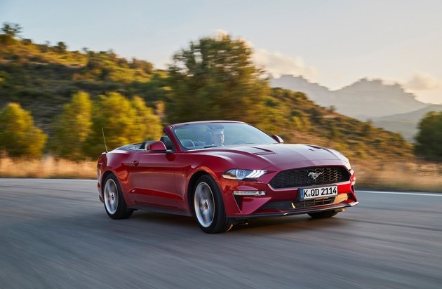Optisch und technisch umfassend verbessert blickt der neue Ford Mustang seiner Markteinführung in Deutschland entgegen, die für April 2018 geplant ist. Die tiefgreifend überarbeitete jüngste Version der legendären Sportwagen-Ikone tritt mit noch kraftvollerem V8-Motor, einer optionalen Zehngang-Automatik, einem aufgewerteten Interieur mit zwölf Zoll großem Multifunktionsdisplay und vielen anderen hochinteressanten Ausstattungsdetails an. Die Preise für den 213 kW (290 PS) starken Mustang Fastback mit dem 2,3-Liter-EcoBoost-Turbobenziner*1) beginnen bereits bei 39.000 Euro. Der Mustang GT mit 5,0-Liter-Achtzylinder und 331 kW (450 PS)**1) rollt inklusive der Hochleistungs-Bremsanlage von Brembo und einer Klappenauspuffanlage mit vier Endrohren ab 46.000 Euro zu den Kunden. Damit gehört er weiterhin zu den preislich attraktivsten V8-Coupés auf dem deutschen Markt. Die Cabrio-Version Convertible kostet jeweils 4.500 Euro mehr.
