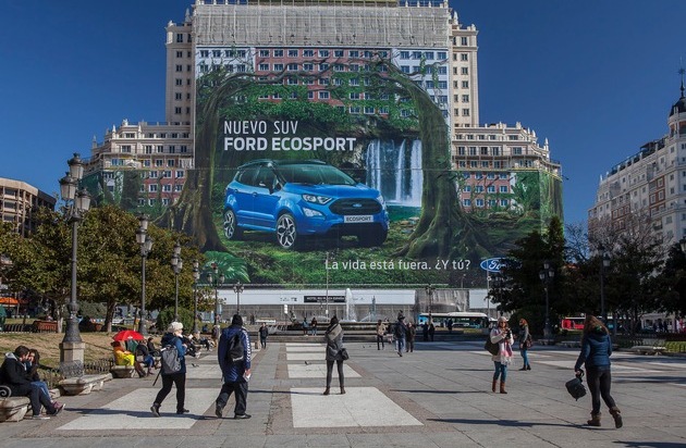 Größtes Werbeplakat der Welt hängt in Madrid und zeigt den neuen Ford EcoSport