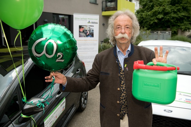 - Durch Ford unterstütztes Trainingsangebot weiterhin buchbarDie Kölner Spritspar-Meisterschaft hat einen prominenten Schirmherrn. Am Freitag, 15. Juni 2018, agierte Jean Pütz erstmalig in seiner neuen Funktion und präsentierte gewohnt anschaulich und unterhaltsam seinen Blick auf Spritsparen und Nachhaltige Mobilität unter dem Motto "Besser das kleinere Übel wählen". Pütz machte Potenziale zur CO2-Reduzierung, die jeder mit kleinen Verhaltensänderungen realisieren kann, mit großen gasgefüllten Ballons buchstäblich sichtbar und überzeugte so das Auditorium.