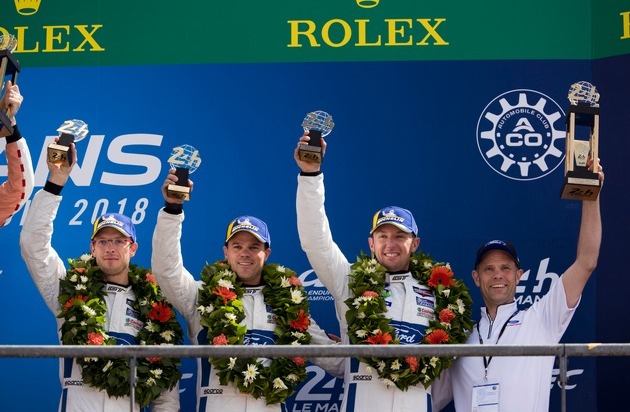 wichtige WeltmeisterschaftspunkteZum dritten Mal hintereinander hat das Werksteam von Ford die 24 Stunden von Le Mans mit einem Top-3-Ergebnis in der GTE Pro-Wertung beendet. Dirk Müller (Burbach), Sébastien Bourdais (F) und Joey Hand (USA), die 2016 beim Debüt des neuen Ford GT ihre Klasse bei diesem Klassiker gewinnen konnten, erreichten das Ziel als Drittplatzierte vor ihren Teamkollegen Harry Tincknell, Andy Priaulx (beide GB) und Tony Kanaan (BR). Während sie in der Anfangsphase des Langstreckenrennens mit dem späteren Sieger um die Führung kämpften, sorgte am Samstagabend ausgerechnet eine Safety-Car-Phase für eine ungünstige Wendung: Sie begann, als der Ford GT mit der Startnummer 68 wie viele andere GTE-Rennwagen auch die Box ansteuern musste. Dies kostete die von einem Ford EcoBoost-Turbomotor angetriebenen Rennwagen fast eine komplette Runde. Dieser Rückstand ließ sich bis zum Rennende nicht mehr egalisieren.