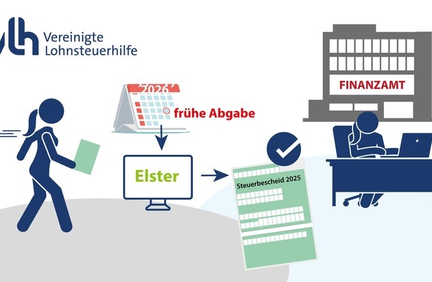 Wer schnell seinen Steuerbescheid für das vergangene Jahr haben möchte, kann bereits jetzt die Steuererklärung für 2025 abgeben. In der Regel beginnt das Finanzamt ab März mit der Bearbeitung der Steuererklärungen für das jeweilige Vorjahr. Lässt sich die Bearbeitung beschleunigen? Und bis wann muss die Steuererklärung 2025 spätestens beim Finanzamt sein? Antworten darauf gibt der Lohnsteuerhilfeverein Vereinigte Lohnsteuerhilfe e. V. (VLH).