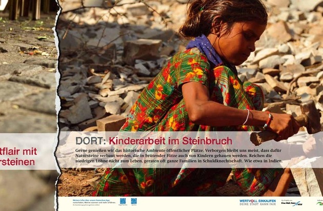 Eine großformatige Fotoausstellung macht Bürger*innen und lokale Organisationen auf das Thema Menschen- und Arbeitsrechte im Kontext der öffentlichen Beschaffung aufmerksam. Die Initiatorin will Kommunen und Städte dazu bewegen, Sozial-und Umweltkriterien im öffentlichen Einkauf strategisch zu verankern.