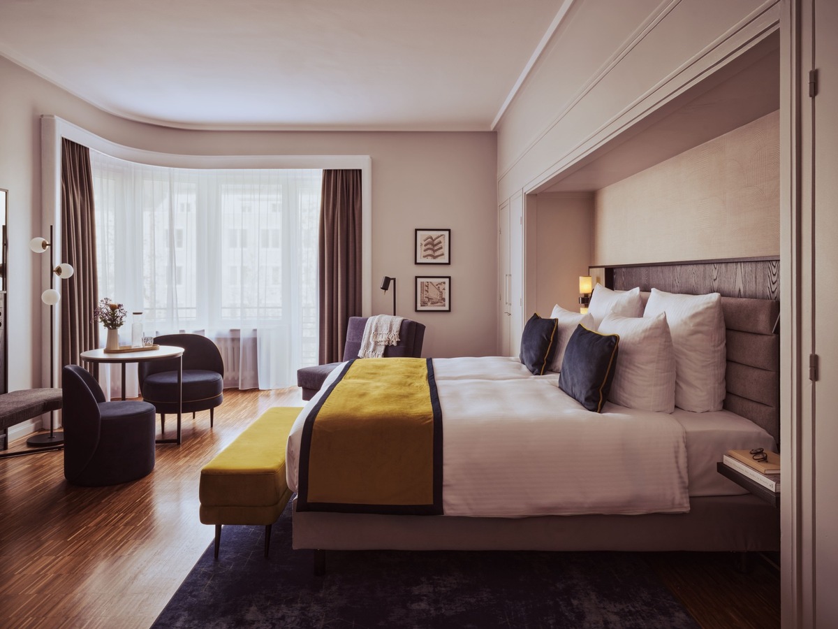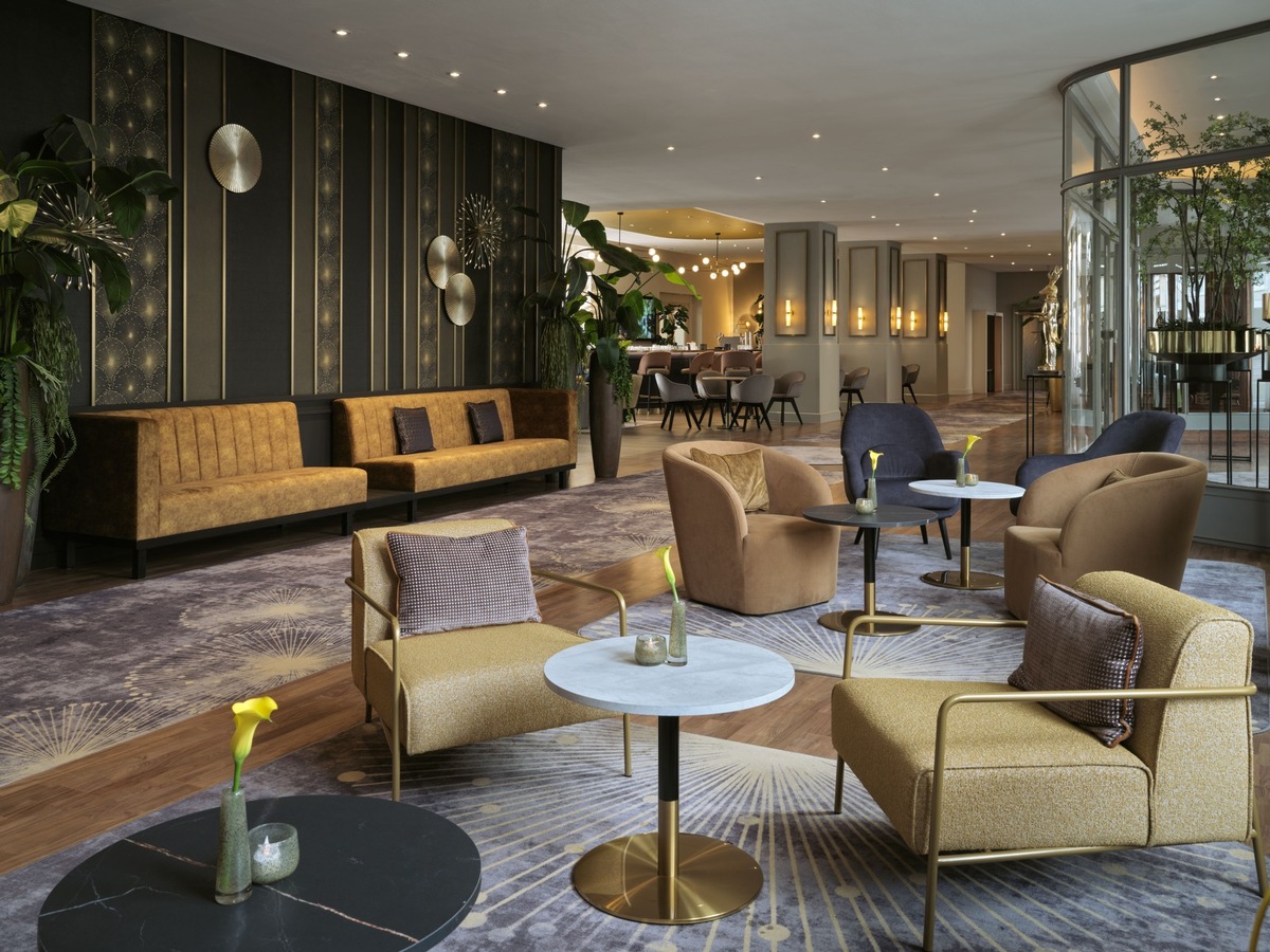 Auch im Mannheimer Hof selbst lässt sich wunderbar entspannen. Nicht nur die angenehm gestalteten Zimmer, der Patio und das Spa bieten gute Gründe, in den komfortablen vier Wänden des denkmalgeschützten Gebäudes zu verweilen. Die öffentlichen Bereiche mit der großzügigen Open Lobby, der Bar und dem Restaurant feiern das gesellschaftliche Leben und spiegeln den Glanz der Goldenen 1920er Jahre wider. Selbst für ein Kulturprogramm muss man das Hotel nicht verlassen. Im Keller wartet die Varietébühne Schatzkistl mit musikalischen Leckerbissen und vielfältigem Kabarett auf. Zum Dinner serviert das Restaurant Twist eine moderne Fusion-Küche, die französische und asiatische Einflüsse mit Leichtigkeit vereint. Die Bar Joy, benannt nach der legendären Mannheimer Jazzkünstlerin Joy Fleming, bietet erlesene Weine und Signature Drinks wie den „Mannheimer Hof Spritz“ – der perfekte Drink am perfekten Ort, um ein gelungenes Wochenende ausklingen zu lassen.