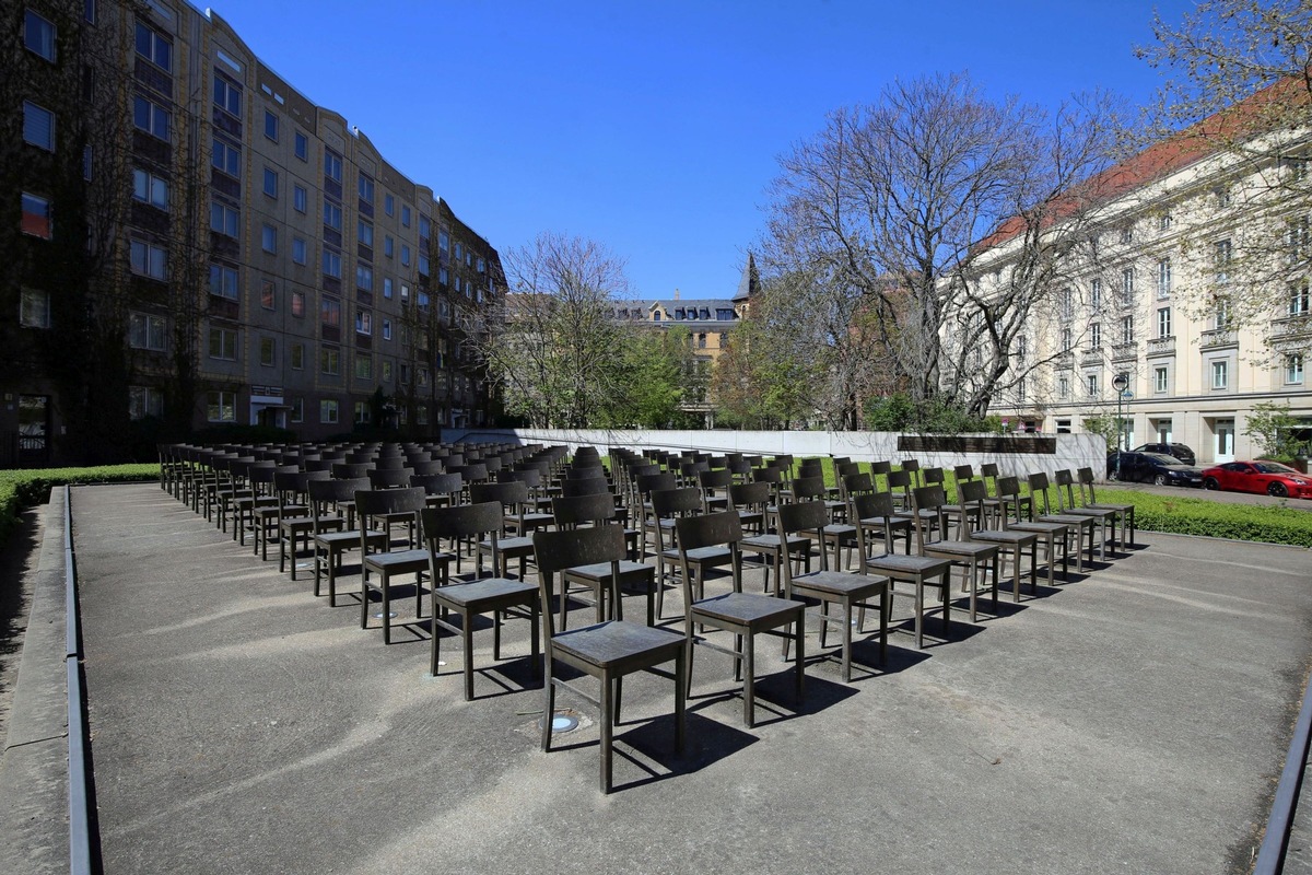 Several memorial sites mark the ruptures of 1938. The Synagogue Memorial on Gottschedstraße/Zentralstraße, composed of 140 bronze chairs, outlines the footprint of the Great Community Synagogue destroyed during the November Pogrom. Installed in 2001, the walkable artwork recalls the expelled and murdered Jewish community. In the Kolonnadenviertel (Apels Garten 4), a sound installation at the site of the former Ez-Chaim Synagogue – inaugurated in September 2024 – makes the lost space acoustically perceptible. Historical cantorial recordings, including those of Chief Cantor Wilkomirsky, are interwoven with contemporary cello compositions and student audio projects, transforming what is today a parking area into a place of reflection.