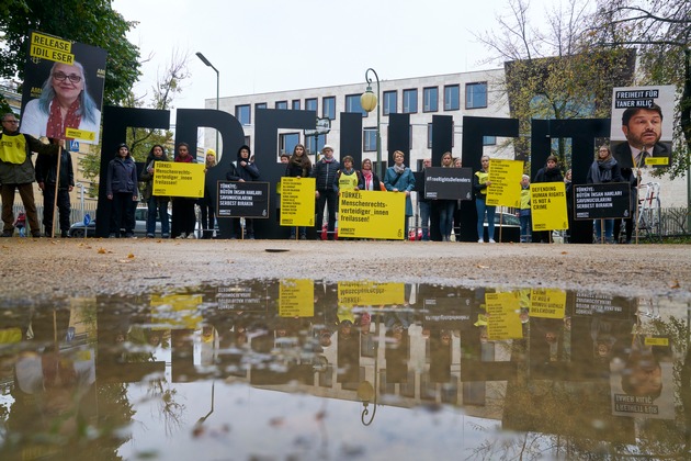Am Mittwochmorgen (25.10.) begann das Verfahren gegen elf Menschenrechtler in der Türkei, darunter Idil Eser und Taner Kilic, zwei führende Vertreter der türkischen Amnesty-Sektion, sowie der deutsche Trainer Peter Steudtner. Den Angeklagten drohen bis zu 15 Jahre Haft. Parallel zum Prozessauftakt forderten Amnesty-Aktivisten vor der türkischen Botschaft in Berlin Freiheit für die Inhaftierten.