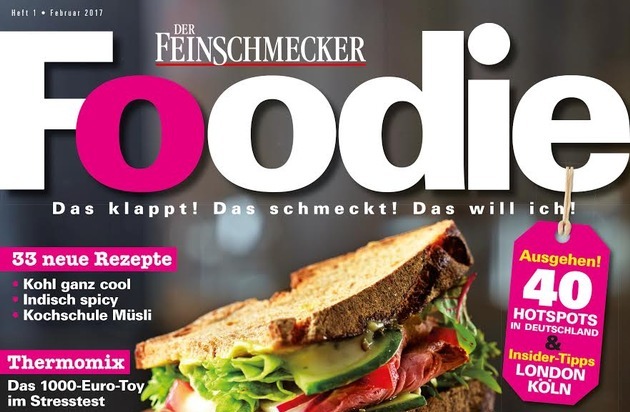Nach dem erfolgreichen Start von FOODIE, dem jungen Magazin aus der FEINSCHMECKER-Familie, kommt das Magazin mit einem Upgrade: Mehr Themen und Trends, mehr Service und Unterhaltung bietet das aktuelle Heft aus dem Hamburger Jahreszeiten Verlag, das jetzt frisch im Handel ist. Neben den 33 gewohnt machbaren Rezepten - Schwerpunkt: das Comeback des Abendbrots - bieten die Macher des Heftes der Zielgruppe noch mehr Inhalt rund um kulinarischen Lifestyle. Schließlich kochen Foodies zwar leidenschaftlich gern, sind aber ebenfalls neugierig auf neue Lokale und Bars, entdecken die Hot Spots von Städten im In- und Ausland, probieren neue Trends aus und möchten wissen, was angesagt ist: