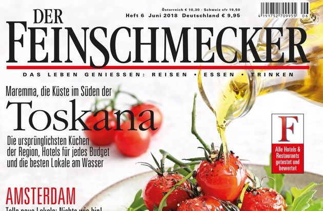 Die Juni-Ausgabe des Magazins DER FEINSCHMECKER aus dem Hamburger JAHRESZEITEN VERLAG ist ab 9. Juni für 9,95 Euro im Zeitschriftenhandel erhältlich.