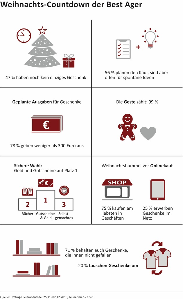 Weihnachtsumfrage Feierabend.de: Best Ager lassen sich gerne im Geschäft inspirieren