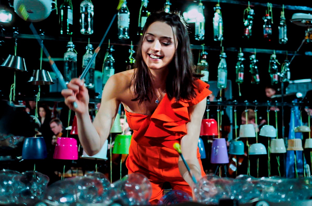 Im "Recycling Concerto" bringt die Schlagzeugerin Vivi Vassileva ein außergewöhnliches Instrumentarium zum Klingen: ein Vibraphon aus alten Glasflaschen, Kaffeekapsel-Chimes und singende Plastikflaschen. Gregor A. Mayrhofer, der das Werk zwischen 2019 und 2021 komponiert hat, dirigiert in diesem Video selbst das SWR Symphonieorchester. Auch im Orchester setzen raschelnde Folien, Marmeladengläser und selbstgebaute Shaker ungewohnte Akzente. So entsteht ein eindrucksvolles Musikerlebnis voller überraschender Farben. Die Aufnahme entstand im März 2025 im SWR Funkstudio Stuttgart.