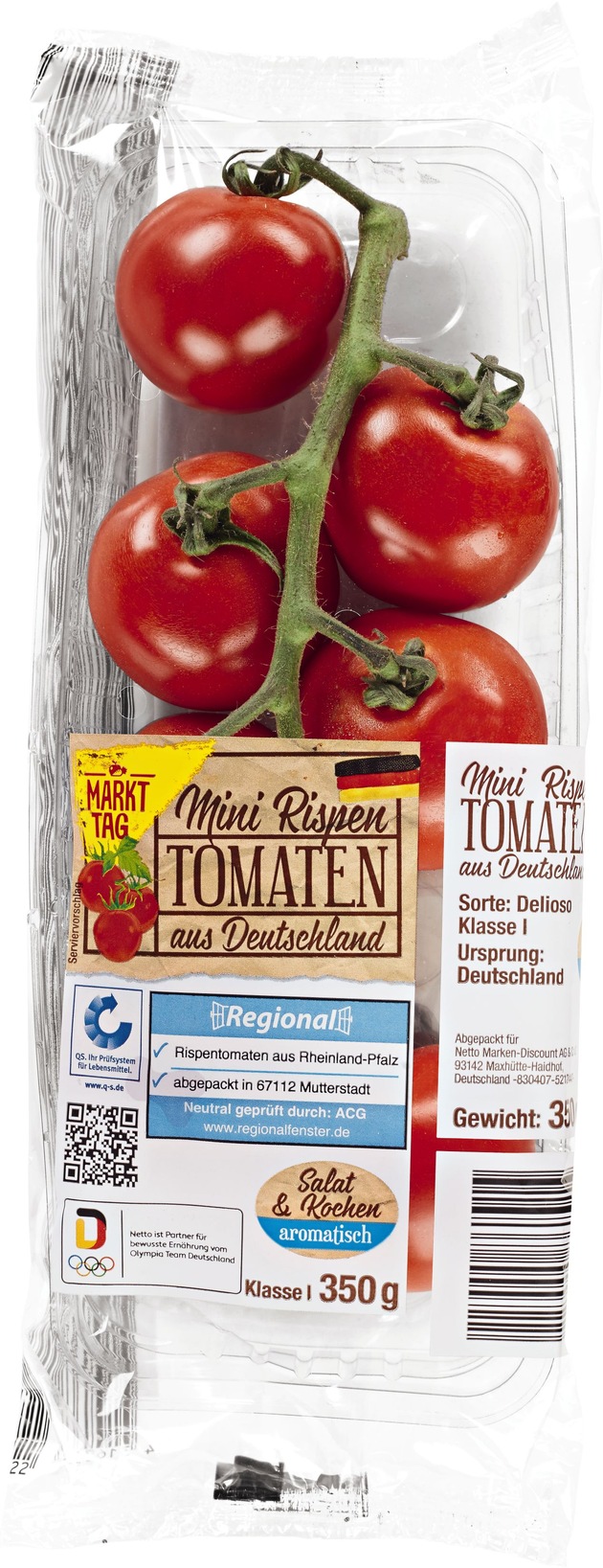 "Unsere neue Eigenmarke 'Markttag' ist ein weiterer Meilenstein in unserer vorwiegend regionalen Sortimentsausrichtung im Obst- und Gemüsebereich. Über den QR-Code bieten wir unseren Kunden verlässliche Informationen über die Herkunft ihrer Lebensmittel und stärken dadurch das Vertrauen in die Qualität unserer Produkte", so Stefanie Adler, Unternehmenskommunikation Netto Marken-Discount.