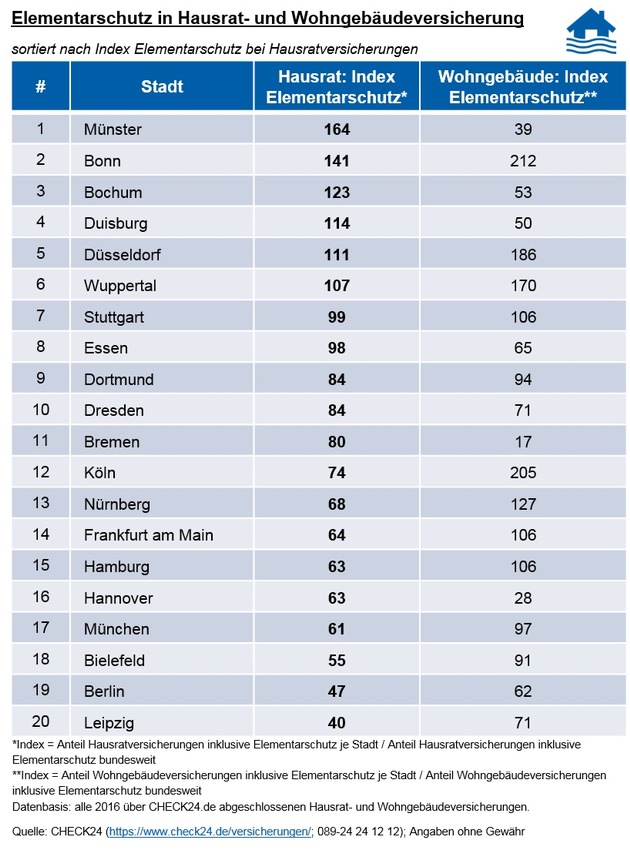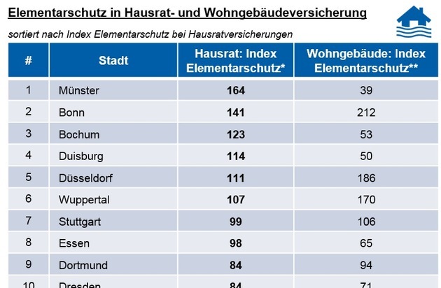 a. versicherbarUnwetter toben über Deutschland. In den 20 größten deutschen Städten sichern viele Verbraucher ihren Hausrat und ihre Häuser nur unzureichend gegen Elementarschäden ab.