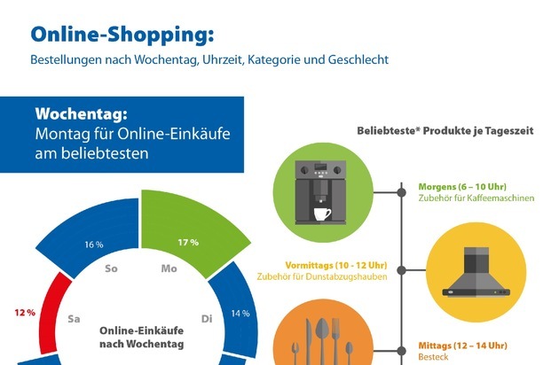 - Montag beliebtester Tag für Online-Einkäufe, Samstag am