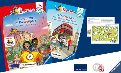 Nach der erfolgreichen Wiederaufnahme des Leserabe Geschichten-Spiels 2024 werden auch dieses Jahr wieder spannende Geschichten passend für Leseanfänger*innen zur Verfügung gestellt. Das kostenlose Angebot von Ravensburger, Stiftung Lesen und dem Mildenberger Verlag richtet sich an Fachkräfte in Grundschulen: Die neuen Leserabe Geschichten stehen im Schulportal der Stiftung Lesen in je zwei Differenzierungsstufen bereit. Die Geschichten können mit begleitenden Unterrichtsmaterialien nach der Anmeldung kostenlos heruntergeladen und in der Klasse eingesetzt werden: www.stiftunglesen.de/leserabe