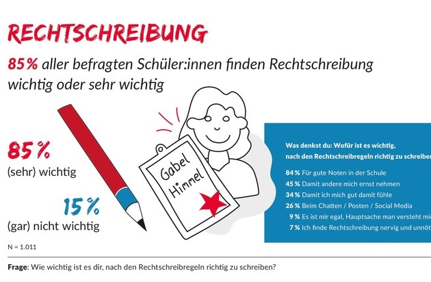 Kinder und Jugendliche wollen richtig schreiben: 85 % finden Rechtschreibung wichtig - KI und Autokorrektur zum Trotz