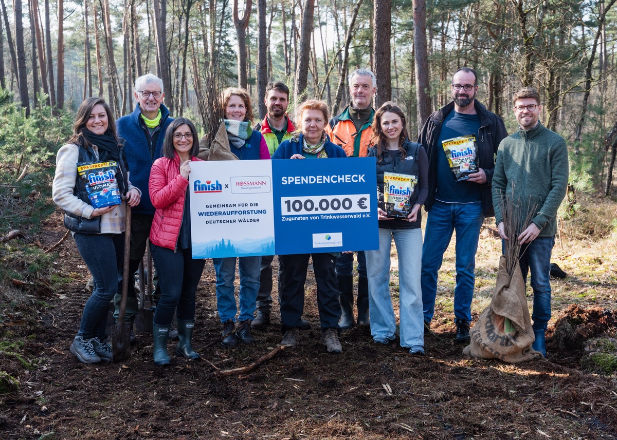 Ein weiterer Höhepunkt der Initiative: In enger Zusammenarbeit mit ROSSMANN und Trinkwasserwald e.V. nahm Finish an der ersten Pflanzaktion dieses Jahres teil. Bei dieser Veranstaltung im niedersächsischen Soltau pflanzten Vertreter der drei Organisationen gemeinsam Bäume und setzten damit ein sichtbares Zeichen für den Umweltschutz. Als Ausdruck des Engagements überreichte Finish an Trinkwasserwald e.V. einen Spendenscheck über 100.000 Euro. Diese Spende wird die Pflanzung von 12.500 Laubbäumen in diesem Jahr ermöglichen, was einer imposanten Waldfläche von drei Hektar entspricht. Finish möchte auf diese Weise zur Sicherung wertvoller Trinkwasser-Ressourcen und zum Schutz der Natur beitragen.