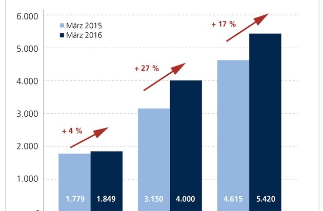 Die Nachfrage nach qualifizierten Fachkräften im Bereich Pflege, Gesundheit und Soziales auf dem Arbeitsmarkt ist unverändert hoch. Die Weiterbildungsspezialisten WBS Training und WBS Schulen haben in einer Untersuchung von Stellenanzeigen im März 2015 und 2016 herausgefunden, dass bundesweit mehr als 14.000 Stellen in diesen Bereichen ausgeschrieben waren. Besonders dramatisch ist die Suche nach Altenpflegehelfern gewachsen: Sie stieg innerhalb eines Jahres um 82 Prozent. Aber auch Altenpfleger (+34 Prozent) und Krankenpflegehelfer (+49 Prozent) waren stark gefragt. Insgesamt gab es im Bereich der Gesundheits-, Kranken- und Altenpflegehilfe im März 2016 5.420 Stellen. Sehr begehrt waren mit 4.000 Angeboten und einem Anstieg von 27 Prozent auch Erzieher und pädagogische Fachkräfte in der Kindertagespflege. Ebenso bewegte sich das Stellenangebot für Fachkräfte, die für einen reibungslosen Ablauf in Arztpraxen sorgen, mit 1.849 Stellen auf einem hohen Niveau. Diese Ergebnisse stellt WBS Training in seiner jüngsten Studie "JobReport Gesundheits-, Pflege- und Sozialberufe" vor.