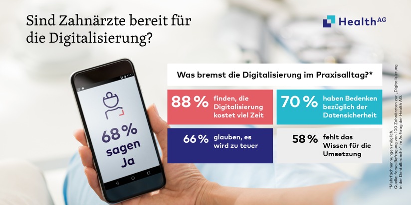 Zur Umfrage: forsa-Befragung von 100 Zahnärzten zur "Digitalisierung in der Dentalbranche" im Auftrag Health AG.