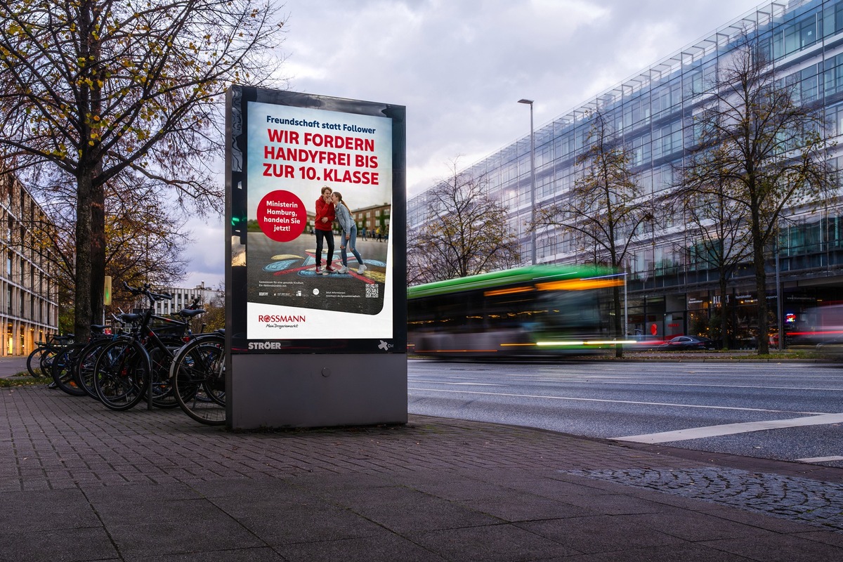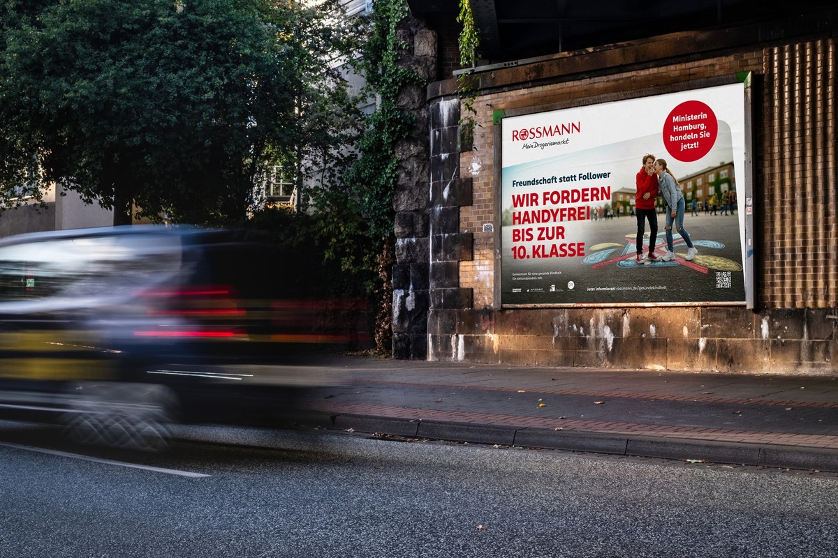 Mit einer groß angelegten Motivkampagne und dem deutlichen Appell „Handyfrei bis zur 10. Klasse“ richtet sich ROSSMANN ab heute gezielt an das Niedersächsische Kultusministerium. Im Fokus steht die Forderung nach klaren, verbindlichen Regelungen zur privaten Smartphonenutzung an Schulen in Niedersachsen. Bis Ende November sind die Kampagnenmotive im Großraum Hannover und auf digitalen Bildschirmen ausgewählter ROSSMANN-Filialen in der Landeshauptstadt zu sehen. Die Überforderungssituation von Schülern, Eltern sowie Lehrkräften im Umgang mit dem „digitalen Dauerbegleiter“ lässt aus Sicht des Unternehmens keinen weiteren Aufschub für entschiedenes Handeln zu.