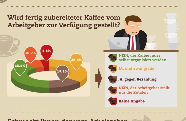 Eine Studie von Kaffee Partner zeigt: 3 von 4 deutschen Arbeitnehmern bekommen keinen kostenlosen Kaffee vom Arbeitgeber
