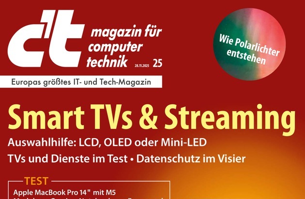 Großer Bildschirm, kleiner Preis: Aktuelle Smart-TVs mit 65 Zoll Bilddiagonale sind bereits ab 800 Euro erhältlich. Das zeigt der Test von sechs Fernsehern durch Europas führendes IT- und Technikmagazin c't in Ausgabe 25/2025. Die Redaktion nahm OLED- und LCD-Modelle gängiger Anbieter unter die Lupe. Einige LCD-TVs können dank verbessertem Local Dimming auch bei HDR-Inhalten mit den OLED-Konkurrenten mithalten.