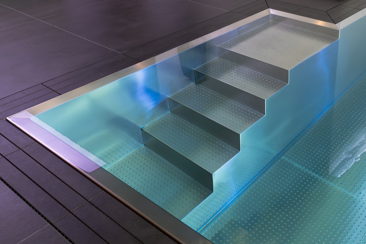 Wenn der Entschluss zum Einbau gefallen ist und die erforderlichen Voraussetzungen erfüllt sind, gilt es, verschiedene Angebote von Fachbetrieben im Detail zu vergleichen. Dabei sind die Qualität der eingesetzten Materialien und nachgewiesene Kompetenz der Anbieter von besonderer Bedeutung. Aufschlussreich ist auch die Besichtigung älterer Referenzobjekte der Anbieter. Eine nachhaltig gute Wahl sind Becken, Ausstattung und technische Komponenten aus hochwertigem Edelstahl. Der nichtrostende Stahl ist flexibel formbar und ermöglicht so eine Vielzahl an individuellen Gestaltungsmöglichkeiten - vom klassischen Rechteck bis hin zu organischen Formen. Dank der hohen Beständigkeit gegen Korrosion, Witterungseinflüsse und UV-Strahlen behält eine Poolanlage aus Edelstahl ihr attraktives Erscheinungsbild über Jahrzehnte. Anders als andere Beckenmaterialien ermöglicht der robuste Werkstoff zudem eine ganzjährige Nutzung von der sommerlichen Abkühlung bis zum Eisbaden im Winter. Die glatte Oberfläche verhindert Anhaftungen und reduziert dadurch deutlich den Pflegeaufwand und erforderlichen Chemikalieneinsatz. Handläufe, Treppen oder Leitern aus Edelstahl erleichtern den sicheren Einstieg ins kühle Nass, Sitzbänke oder Liegen im Wasser machen das luxuriöse Poolerlebnis vollkommen. Infinity-Rinnen mit Edelstahlabdeckung integrieren den Pool optisch in die Umgebung, da das Wasser scheinbar unaufhörlich über den Rand fließt. In die Poolwand eingebaute Skimmer mit Gehäusen aus Edelstahl saugen das Wasser an der Oberfläche zur Filtration ein. Einlaufdüsen verteilen das gefilterte Wasser anschließend wieder gleichmäßig im Becken. Wasserspiele wie Fontänen, Wasserfälle oder Nebeldüsen sind zusätzliche Hingucker. LED-Lampen mit Edelstahlumrandung schaffen als Rand- oder Unterwasser-Beleuchtung eine stimmungsvolle Atmosphäre. Kombiniert mit Unterwasser-Lautsprechern wird die abendliche Poolparty garantiert zum unvergesslichen Erlebnis.