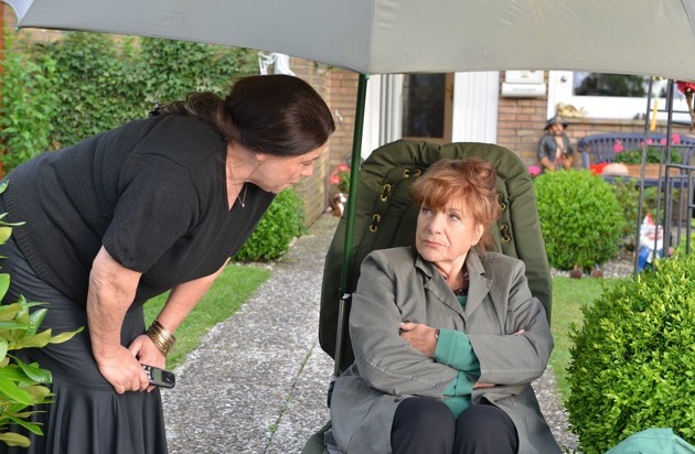 In der Gesellschaftskomödie "Frau Roggenschaubs Reise", die das ZDF am Montag, 14. Dezember 2015, 20.15 Uhr, sendet, nistet sich Hannelore Hoger alias Rose Roggenschaub bei einer Großfamilie ein.