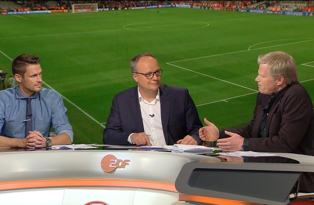 Moderator Oliver Welke und Oliver Kahn begrüßen die ZDF-Zuschauer an beiden Sendetagen bereits um 20.15 Uhr aus dem EM-Studio in Paris.