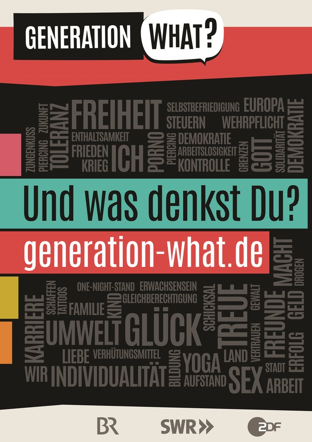 Noch bis Ende November können junge Menschen zwischen 18 und 34 Jahren auf www.generation-what.de an der Umfrage teilnehmen: Sie umfasst 149 Fragen von Politik über Religion bis hin zu Sexualität und Lebensglück. Das Ziel: Die 18- bis 34-jährigen Europäer sollen die Chance erhalten, selbst ein Bild ihrer Generation zu zeichnen. Koordiniert wird "Generation What?" von der Europäischen Rundfunkunion (EBU). In Deutschland begleitet das ZDF zusammen mit dem BR und dem SWR das Projekt. Ende November wird das SINUS-Institut in Kooperation mit den Sendern und in Zusammenarbeit mit Soziologen aus ganz Europa anhand einer repräsentativ gezogenen Stichprobe die Endergebnisse zum Projekt "Generation What?" vorstellen.