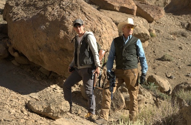 Michael Douglas in einem Katz- und Mausspiel vor Traumkulisse: Am Montag, 22. Mai 2017, 22.15 Uhr, präsentiert das "Montagskino im ZDF" den Survival-Thriller "In der Schusslinie" als Free-TV-Premiere. Oscar-Preisträger Michael Douglas spielt einen psychopathischen Unternehmer, seinen Gegenpart verkörpert Jeremy Irvine. Inszeniert wurde die unbarmherzige Jagd durch die brennende Hitze der Wüste New Mexicos von Regisseur Jean-Baptiste Léonetti.