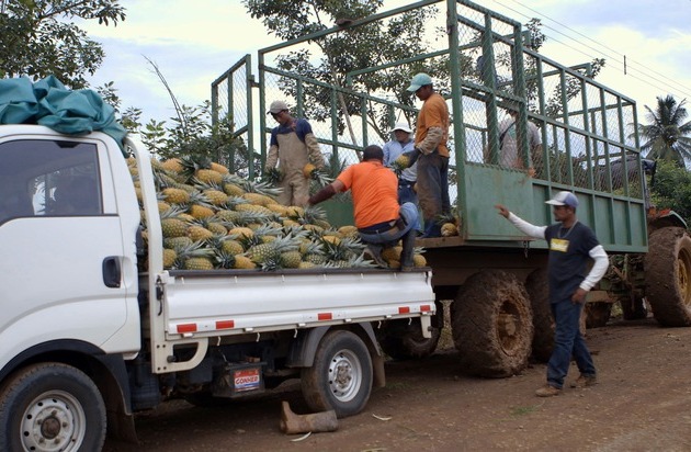 Südfrüchte werden als Hochglanzprodukte präsentiert: makellos, frisch und vor allem billig. Weniger als zwei Euro kostet eine Ananas im Schnitt. Das ist nur möglich, weil in den Anbauländern gespart wird: bei Löhnen und an gesundheitlich vertretbaren Anbaumethoden.