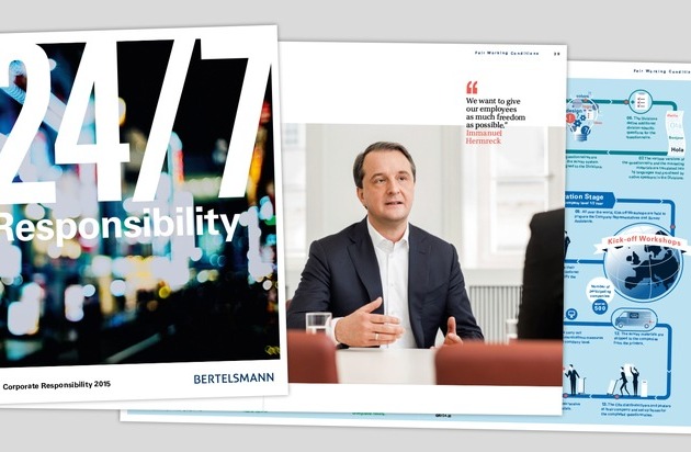 Bertelsmann dokumentiert sein soziales und ökologisches Engagement in einem neuen Corporate-Responsibility (CR)-Magazin. Die Publikation mit dem Titel "24/7 Responsibility" zeigt, wie das internationale Medien-, Dienstleistungs- und Bildungsunternehmen für sieben konzernübergreifend bedeutsame Kernthemen Verantwortung übernimmt. Parallel sind aktuelle Fakten und Kennzahlen zu Nachhaltigkeitsthemen - orientiert an den Leitlinien der Global Reporting Initiative (GRI G4) - sowie die jüngste Klimabilanz von Bertelsmann ab sofort auf der Website des Unternehmens abrufbar (http://www.bertelsmann.de/verantwortung). Die crossmediale Berichterstattung zeigt gleichzeitig auch den Fortschritt in der Initiative "Global Compact" der Vereinten Nationen, an der Bertelsmann seit 2008 teilnimmt.