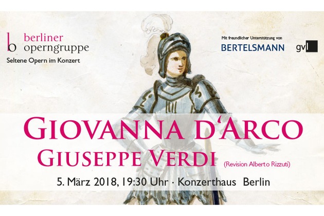 Berliner Operngruppe und Bertelsmann bringen Verdi-Oper "Giovanna d'Arco" erstmals werkgetreu nach Berlin