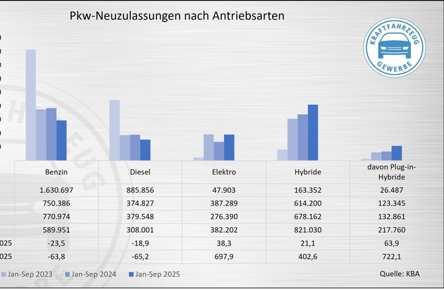 Der laut Kraftfahrt-Bundesamt (KBA) erneut deutliche Anstieg der Elektroauto-Neuzulassungen im September ist kein Beleg für eine durchgreifend starke Marktdynamik. Die Nachfrage nach batterieelektrischer Mobilität wird trotz der Zuwächse noch immer zu wenig durch Privatkunden getrieben, erklärt der Zentralverband Deutsches Kraftfahrzeuggewerbe (ZDK).