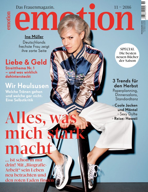 "Ich bin nicht selbstbewusst" - mit dieser Aussage überrascht Ina Müller im Interview mit dem Frauenmagazin EMOTION (Ausgabe 11/16 ab morgen im Handel, www.emotion.de). "Und was mir zunehmend im Weg steht, ist das Alter. Das meine ich nicht optisch und nicht kokettierend, sondern dass ich manche Dinge einfach nicht mehr machen will. Und das selbst, wenn mein Gehirn sagt: 'Jetzt reiß dich mal zusammen' - ich schaffe es nicht mehr", sagt die 51-Jährige. "Ich erwarte immer von den Menschen, dass sie mir sagen: 'Ina, du musst das nicht tun.' Das sagt aber keiner. Und dann werde ich weinerlich", so die Sängerin. "Das kann natürlich auch immer im Zusammenhang mit meinem schwankenden Hormonhaushalt stehen. Der war ja früher mal 'ne Bank. Jetzt führt er fast ein Eigenleben."