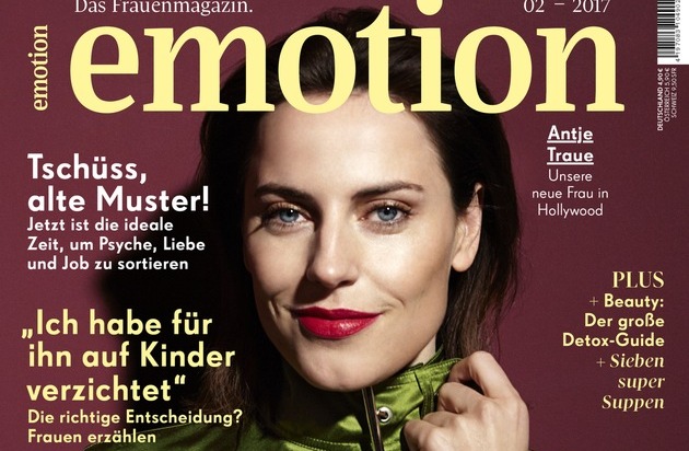 In Hollywood ist Antje Traue schon seit Jahren ein Star. Bei uns eine Neuentdeckung, die gleich mit drei deutschen Filmen in die Kinos kommt. Dass viele Optionen nicht immer ein Segen sind, weiß die Schauspielerin, die in der DDR und Westdeutschland aufgewachsen ist. "Zu viele Möglichkeiten können auch schwierig sein", sagt Antje Traue im EMOTION-Interview (Ausgabe 2/17 ab morgen im Handel, www.emotion.de). Im Alter von acht Jahren zog sie nach dem Mauerfall mit ihrer Mutter und der zwei Jahre jüngeren Schwester nach Süddeutschland. "München war für uns wie eine Wundertüte. Dieser Überfluss, diese Möglichkeiten! Ein unfassbarer Luxus", sagt die 35-Jährige, die im sächsischen Mittweida geboren wurde. Diese Erfahrung zweier politischer Systeme fasst die "Vier gegen die Wand"-Darstellerin so zusammen: "In einem diktatorischen System trifft man wenig Entscheidungen selbst - der Staat trifft sie für einen. Man hat keine Wahl und lernt dadurch auch nicht zu wählen. Ich habe schnell festgestellt, dass die Freiheit überfordernd sein kann", weiß Antje Traue, die als Widersacherin von Superman in "Man of Steel" 2013 ihren internationalen Durchbruch feierte. Sie musste Entscheiden erst lernen. "Das fällt mir manchmal heute noch schwer."