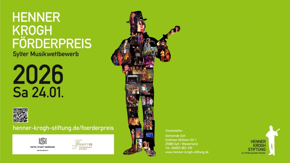 Für die 34. Ausgabe des Henner-Krogh-Förderpreises werden noch Teilnehmende gesucht. Sylter Talente haben bis zum 2. November 2025 die Chance, sich zu bewerben und ihr Können am 24. Januar 2026 vor einer fachkundigen Jury zu beweisen. Teilnehmen dürfen alle Amateur-Musiker:innen mit Wohnsitz auf Sylt – vom Solo-Künstler bis zur Band. Ob Pop, Rock, Klassik oder Heavy Metal: Beim Henner-Krogh-Förderpreis ist jede Stilrichtung willkommen. Das Mindestalter beträgt 16 Jahre, das Höchstalter 50 Jahre.