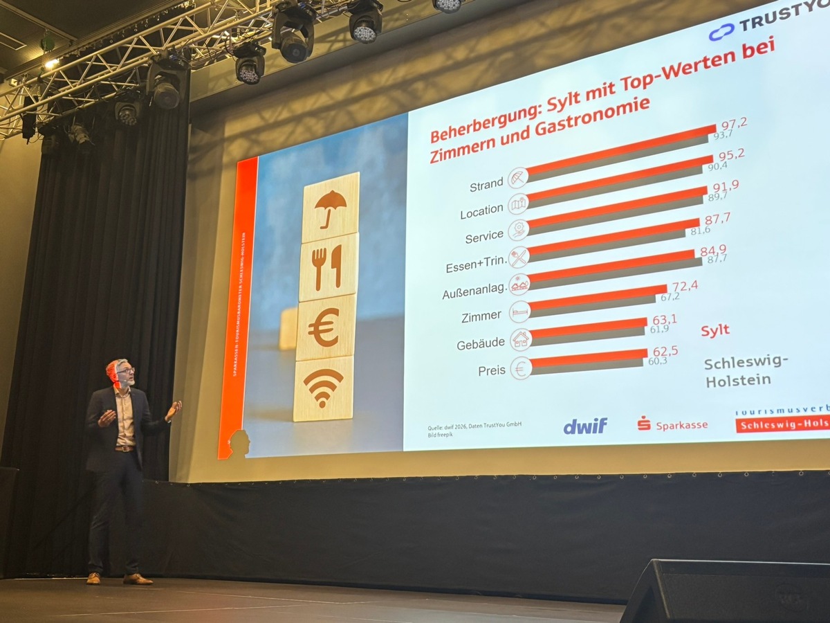 Dieses fußt auf dem „Sparkassen-Tourismusbarometer Schleswig-Holstein“, das seit Jahren als ein bedeutendes Instrument für die Beobachtung und Einordnung der touristischen Entwicklungen im Land gilt und nun erstmals mit relevanten Kennzahlen des Tourismus auf Sylt verknüpft wurde. Initiiert von der SMG und finanziert von der Nord-Ostsee-Sparkasse setzten der TVSH als Auftraggeber und dwif als Auswerter diese exklusive Studie um.