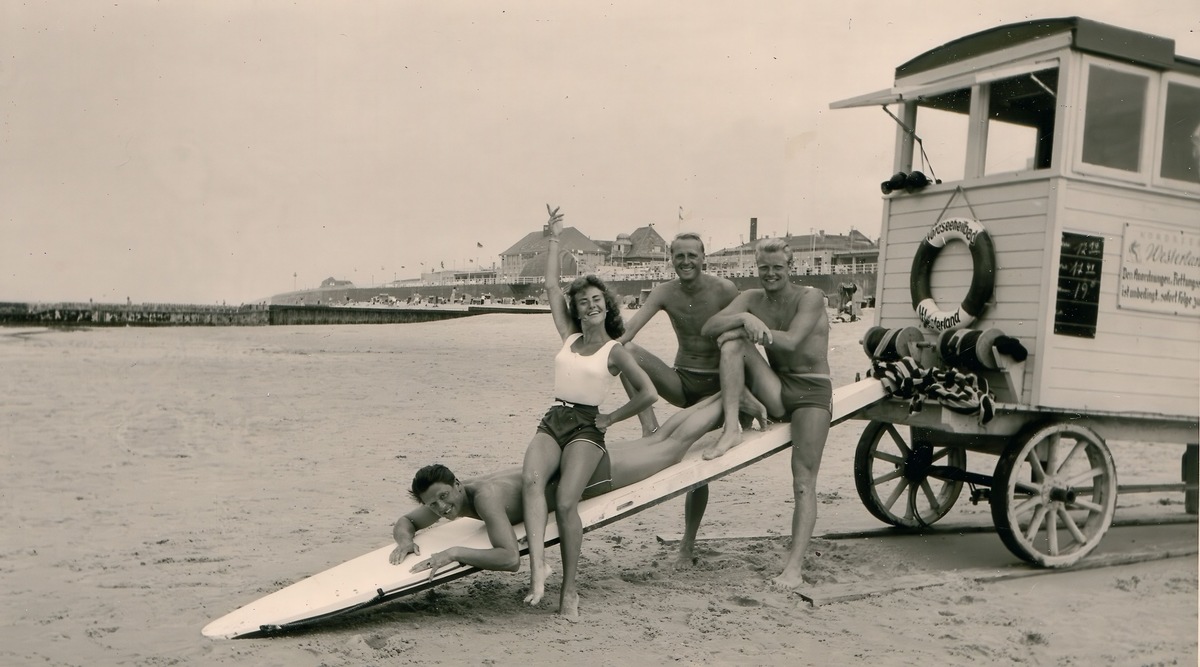 Neben der sportlichen Entwicklung beleuchtet die Ausstellung die enge Verbindung zur Strand- und Rettungsschwimmerkultur. Bereits 1952 wurden die ersten Wellen vor Sylt gesurft – in Tauchanzügen oder auch ganz ohne Neopren, oft auf umfunktionierten Rettungsbrettern. Surf-Equipment und Rettungsgeräte aus vier Jahrzehnten gehören ebenso zu den Exponaten wie historische Surfboards und eine original nachgebaute „Schwimmerkarre“. Dazu kommen Interviews und Zeitzeugenberichte sowie Fotos, Videos und „Super 8“-Aufnahmen aus privaten Sammlungen und aus dem Sylter Archiv. Sie zeigen die faszinierende Geschichte des Surfens, die mehr als 70 Jahre zurückreicht und die Insel so nachhaltig geprägt hat wie kaum eine andere Sportart. „Surfen ist hier nicht mehr nur Wassersport, sondern ein generationenübergreifendes Lebensgefühl, gemeinsame Mentalität und inzwischen fester Bestandteil der Inselkultur", so Angelo Schmitt.