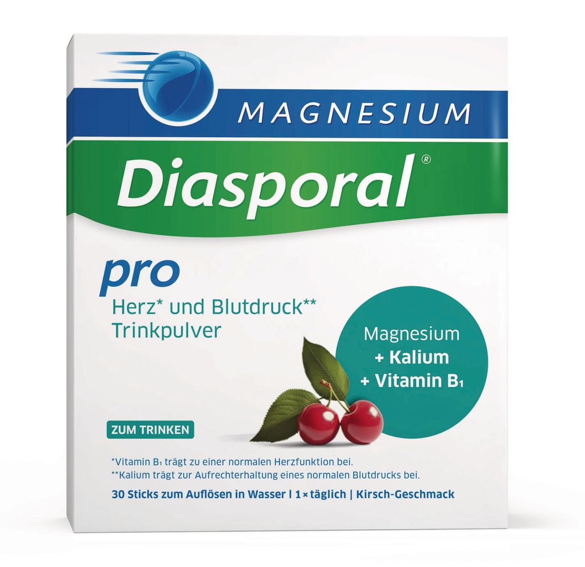 Magnesium-Diasporal® Pro Herz und Blutdruck macht es allen leicht: Die Tagesdosis steckt in einem Stick - auflösbar in heißem oder kaltem Wasser mit Kirschgeschmack. Gut ist auch, was nicht drin ist: Das Trinkpulver enthält reines organisches Magnesiumcitrat und Kaliumcitrat, kombiniert mit Vitamin B1 und ist vegan, zucker-, gluten- und laktosefrei. Egal wie anstrengend der Tag ist: Herzgesund zu leben, ist mit dieser speziellen Nährstoffkombination ein Stück einfacher.