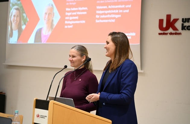 Zahlreiche Gäste verfolgten, wie die beiden Wissenschaftlerinnen zentrale Fragen einer modernen Lehrkräftebildung beleuchteten, die evidenzbasierte Zugänge mit ganzheitlichen Perspektiven und Räumen für Reflexion verbinden. Ein besonderes Highlight war das bewusst gewählte Wortspiel im gemeinsamen Vorlesungstitel „Vision“ - vielfältig, sinnstiftend, optimistisch, nachhaltig - und somit einen inhaltlichen Rahmen setzte. Darauf aufbauend stellten die beiden Vortragenden im Anschluss ihre individuellen Visionen und Ziele für eine nachhaltige Gestaltung von Forschung und Lehre an der Universität Koblenz vor.
