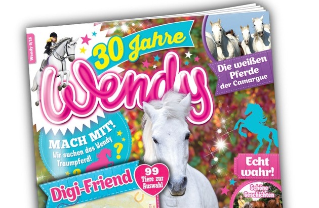Ehapa veranstaltet im Rahmen des Jubiläumsmagazins einen aufregenden Traumpferd-Contest und schenkt allen Lesern außerdem als Heftextra ein digitales Haustier! Daneben überrascht das Magazin mit zahlreichen spannenden Geschichten aus 30 Jahren "Wendy" und erfreut sich auch prominenter Glückwünsche.
