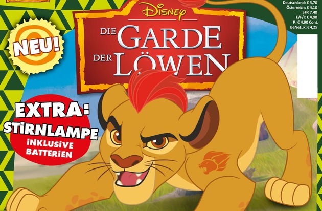 Mit Disney Die Garde der Löwen veröffentlicht Egmont Ehapa am 29.03. das offizielle Magazin zur erfolgreichen Disney Junior TV-Serie. Basierend auf dem Animations-Kinohit Disney König der Löwen wird die Erfolgsgeschichte um die mutigen Löwen weitererzählt. Löwenjunge Kion muss gemeinsam mit seinen mutigen Freunden spannende Herausforderungen bestehen. Neben der TV-Serie wird die Handlung in aufregenden Geschichten und starken Comics im offiziellen Magazin weitererzählt. Gerade für Vorschulkinder bietet das Magazin spannende Rätsel, lustige Activity-Seiten und ein tolles 3D-Extra, das direkt aus Kions Abenteuerwelt kommt. Mit Mut, Freundschaft und Abenteuerlust - auf ins Magazin mit Gebrüll!