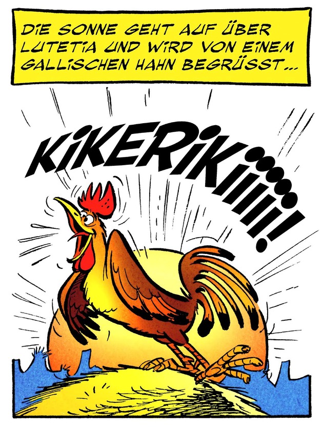 Die Erfolgsstory begann 1959. Die beiden besten Freunde Goscinny und Uderzo eroberten das Comic-Universum mit Asterix im Handumdrehen. René entwarf die Geschichten, Albert Uderzo zeichnete die Figuren: Die Hauptrollen besetzt durch den zierlichen Held Asterix mit dem geflügelten Helm und dessen groben Freund Obelix, der sich gerne prügelt und am liebsten Wildschweinbraten verköstigt. Die nicht weniger wichtigen Nebenrollen zeigen Albert Uderzos Faible für das liebe Federvieh. Kokolorix, der gallische Hahn mal müde und kaum zum Krähen bereit und dann plötzlich in Kampflaune, umjubelt von den Hühnern im gallischen Dorf. In jedem Band wird der Leser von Neuem überrascht.
