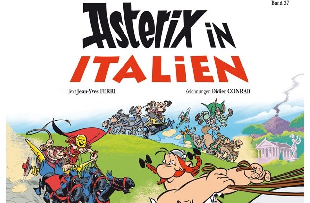 In drei Tagen erscheint der neue Asterix Band "Asterix in Italien". Wir haben Ihnen ein EPK/APK zusammengestellt: In diesem finden Sie Interviews mit dem Asterix-Autor Jean-Yves Ferri, dem Asterix-Zeichner Didier Conrad, Asterix-Schöpfer Albert Uderzo, Asterix-Übersetzer Klaus Jöken, dem Literaturkritiker Denis Scheck und der TV-Moderatorin Johanna Klum. Zudem stellen wir Ihnen Ausschnitte aus dem Animationsfilm "Asterix im Land der Götter" zur Verfügung sowie Schnittbilder aus der "Asterix-Druckerei" und jede Menge Bildmaterial rund um den neuen Asterix Band 37 "Asterix in Italien".